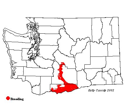 Ash-throated Flycatchers are patchily distributed in a small area of Washington. A few pairs can be found in Yakima, Kittitas, Chelan, Grant, and Adams Counties, although the majority of the population nests in south-central Klickitat County near rivers and in oak stands, such as along Rock Creek.
