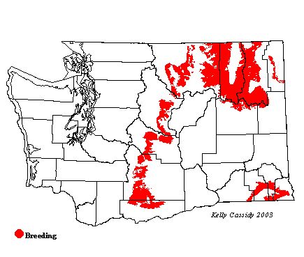 Flammulated Owls are uncommon breeders east of the Cascades in the Ponderosa pine belt from late May to August. There have been occasional records from western Washington, but they are essentially an east side species. Locations where they may sometimes be found include Blewett Pass (straddling Chelan and Kittitas Counties), Colockum Pass area (Kittitas County), and Satus Pass (Klickitat County.)