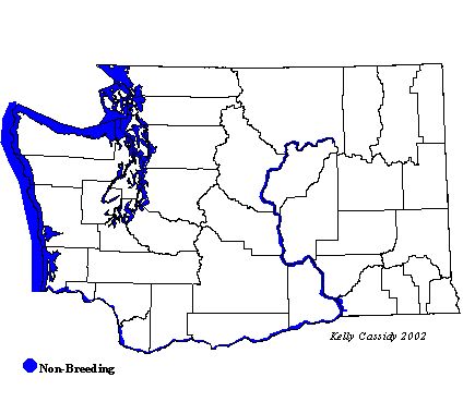 During winter, Pacific Loons can be found off the coast and in inland marine waters, such as the Strait of Juan de Fuca. They are also a common sight during spring and fall migration. September through June is the best time of year to see Pacific Loons in Washington, with numbers peaking during migration in October and again in late May. In summer, non-breeding individuals are occasionally seen in marine waters of western Washington, and rarely, especially during fall migration, on large bodies of water east of the Cascades.