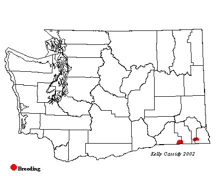 Green-tailed Towhees are local and uncommon breeders at moderate elevations in steep, shrubby areas of the Blue Mountains in far-southeastern Washington. They breed at the Wenatchee Guard Station, the Asotin Creek Wildlife Area in Asotin County, and along the south slopes of the Blue Mountains, at Biscuit Ridge, near Dixie in Walla Walla County.